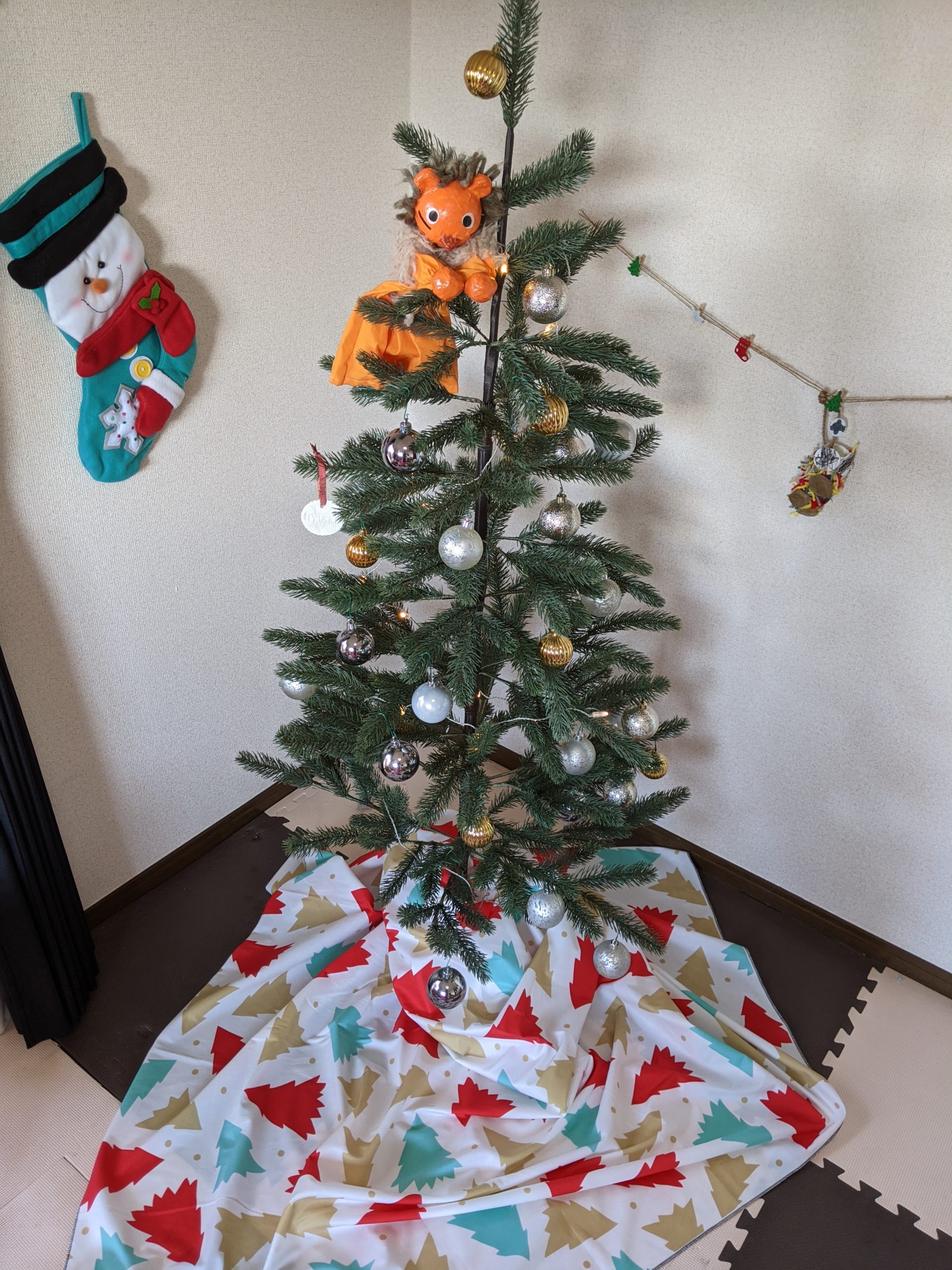 ツリー柄のタペストリーなのでクリスマスツリーとは相性抜群!