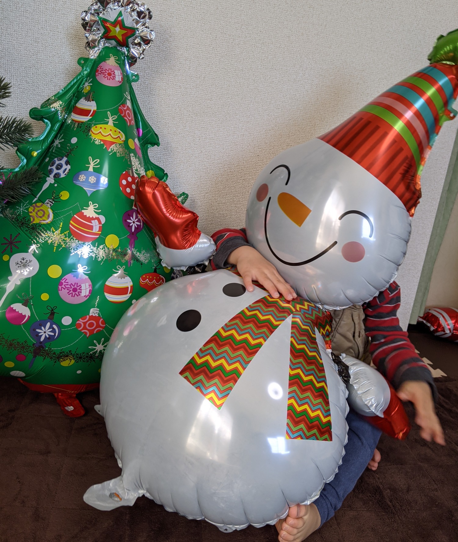 3歳の息子がすっぽりと隠れるくらい大きな「雪だるまバルーン」です。