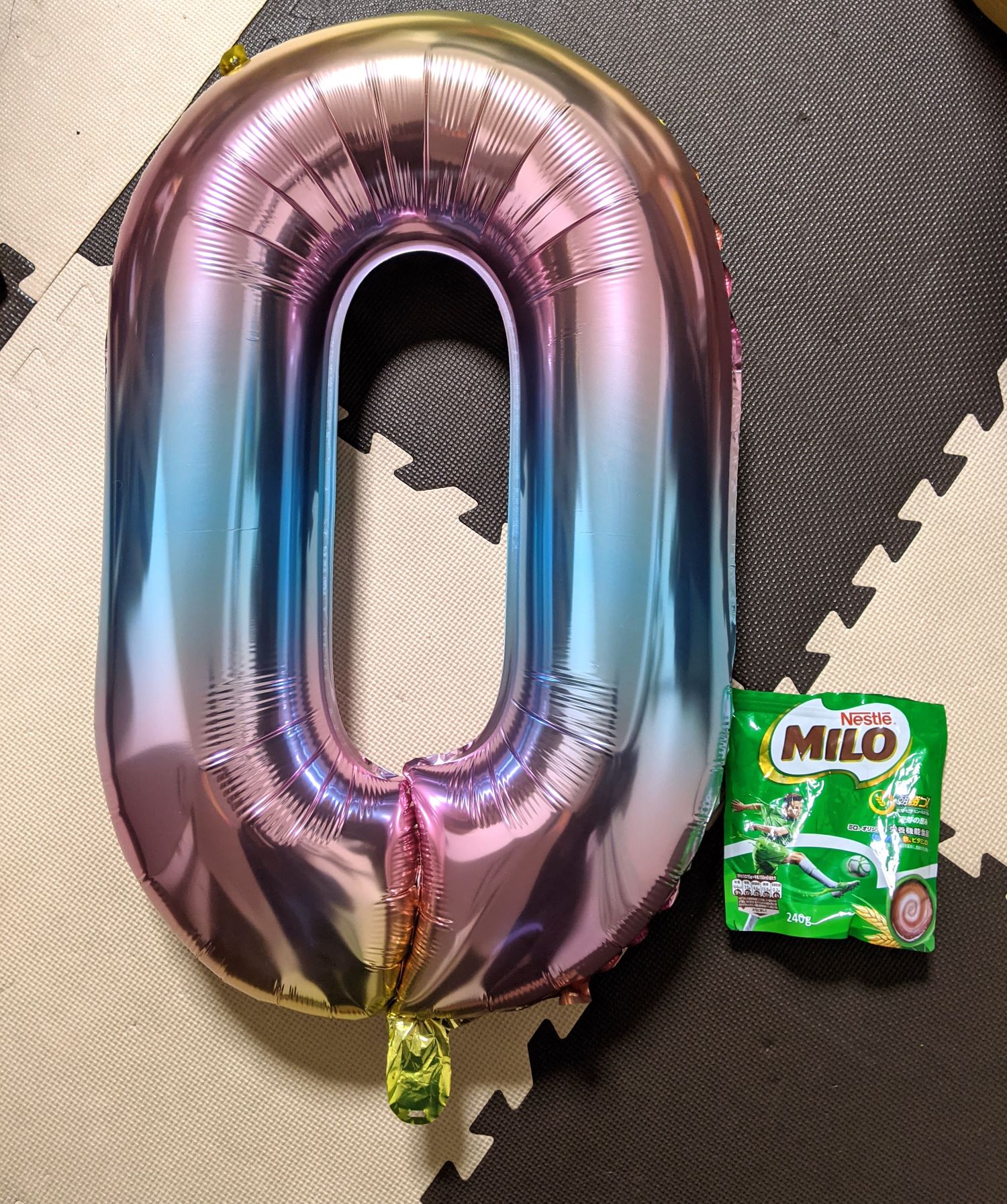 と、タピオカに脱線しましたが、全長約18cmのミロさんと比べたらかなり大きい数字バルーンでした。