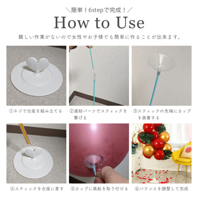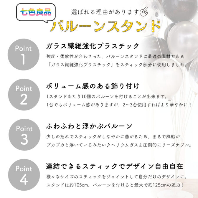 シンプルなバルーンスタンドのため、どこでも気軽に幅広く使えるのが強みです。