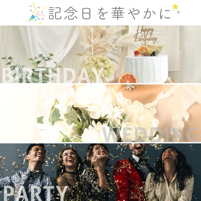 結婚式・誕生日・ガーデンパーティー・ハロウィン・クリスマス等とイベントにおいて非常に活躍します。