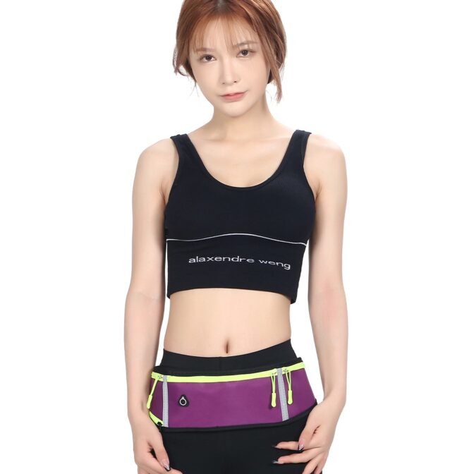 揺れない ランニングポーチ 【パープル】 ボトルホルダー付き (男女兼用・フリーサイズ)