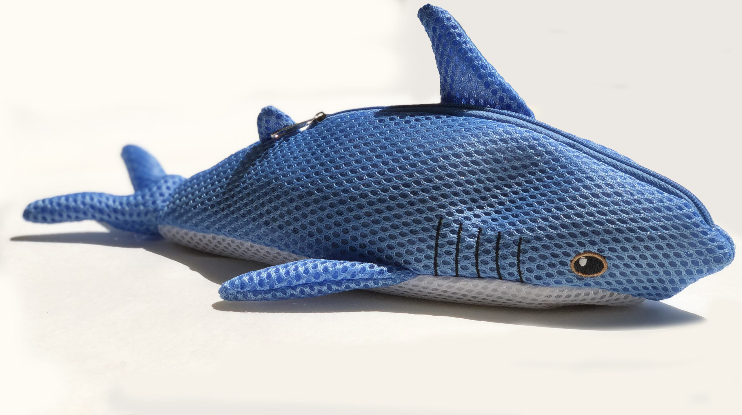 ※当店オリジナルのサメ型。二層になるメッシュ生地を1体ずつ人の手によって丁寧に縫っているからとっても丈夫に作られています。