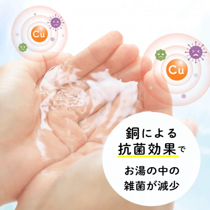 本品にはマグネシウム粒以外にも抗菌作用があると言われている『銅』を粒状で約100g入れており、本体の清潔さにもこだわっています。(記載の内容は銅の一般的な効果であり、本品の実証試験はしておりません)
