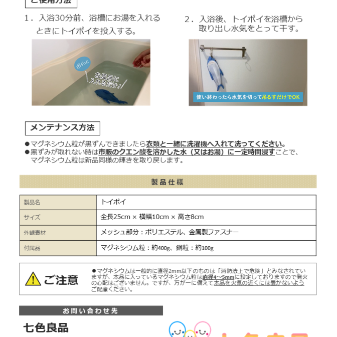 info@nanairo-ryohin.com お問い合わせのご返信は2営業日以内を心がけております。 数日経過致しましても当社からの返信がない場合は、ご入力いただいたメールアドレスに間違い、又はお客様のメールサーバーなどにより自動的に「迷惑メール」として格納または削除された可能性がございます。以上をご確認の上、お手数ですが再度お問い合わせください。 |